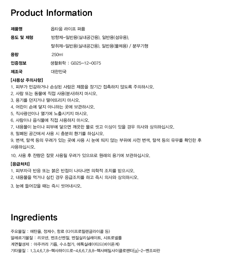 »óǰ¸í ¿ÉŸ¿ò OPTATUM ±¹³»Á¦Á¶ ¶óÀÌÇÁ ÆÛǾ ¼¶À¯ Å»ÃëÁ¦ ¹æÇâÁ¦ ½ºÇÁ·¹ÀÌ (Çâ·£´ý)