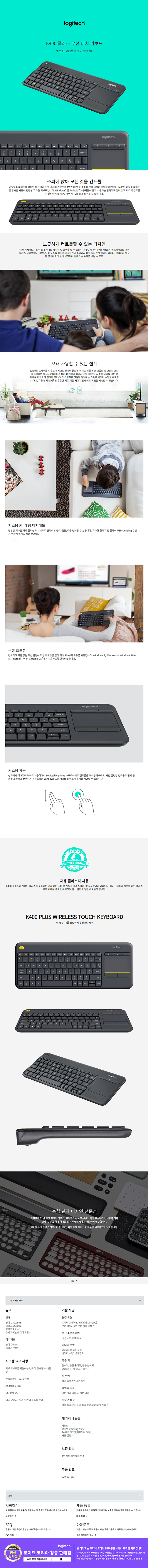 »óǰ¸í ·ÎÁöÅØ ÄÚ¸®¾Æ Á¤Ç° ¹«¼± ÅÍÄ¡ Űº¸µå K400 PLUS