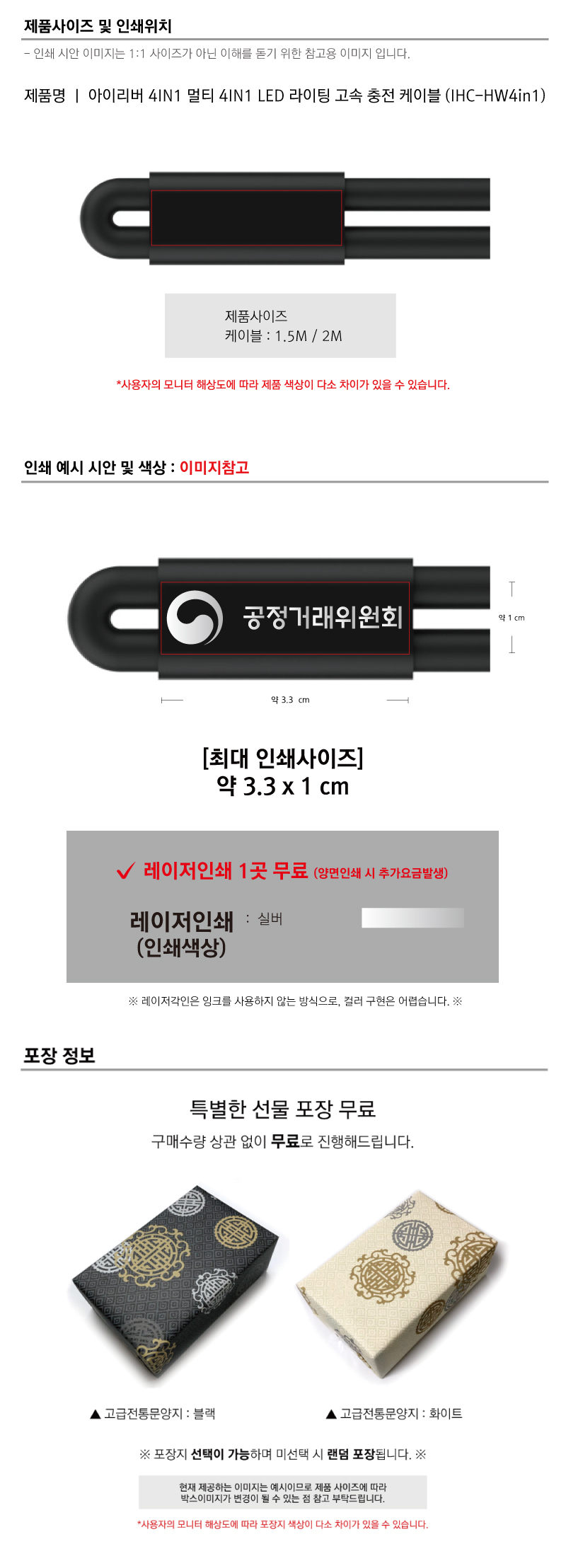 »óǰ¸í ¾ÆÀ̸®¹ö IHC-HW4in1 ¸ÖƼ 4IN1 LED ¶óÀÌÆÃ °í¼Ó ÃæÀü ÄÉÀ̺í (1.5M/2M)