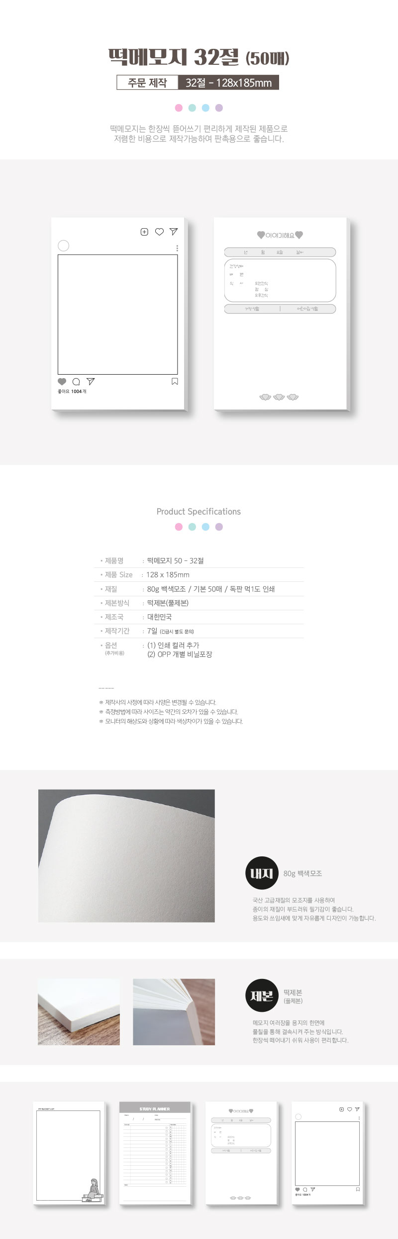 »óǰ¸í [ÁÖ¹®Á¦ÀÛ] ¶±¸Þ¸ðÁö 32Àý (128*185mm/B6/50¸Å)